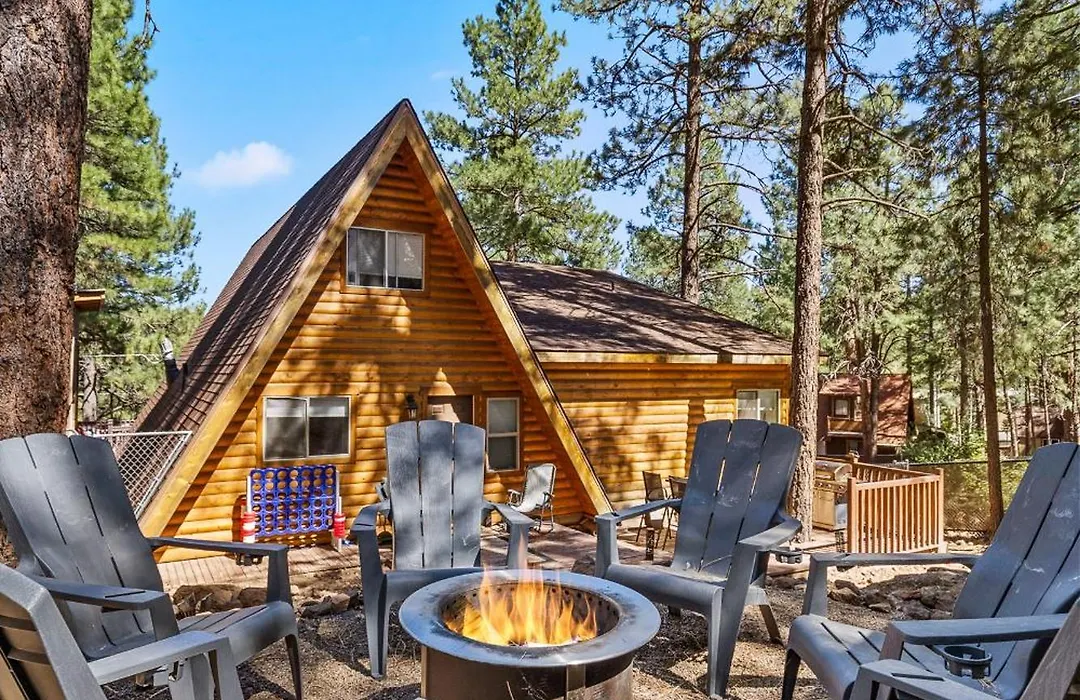 Die 2-Zimmer- Flagstaff A-Frame Pines Cabin W Loft N Game Room verfügt über eine sonnige Terrasse mit Blick auf die Berge und ist 15 Autominuten vom Flughafen Flagstaff Pulliam entfernt gelegen.